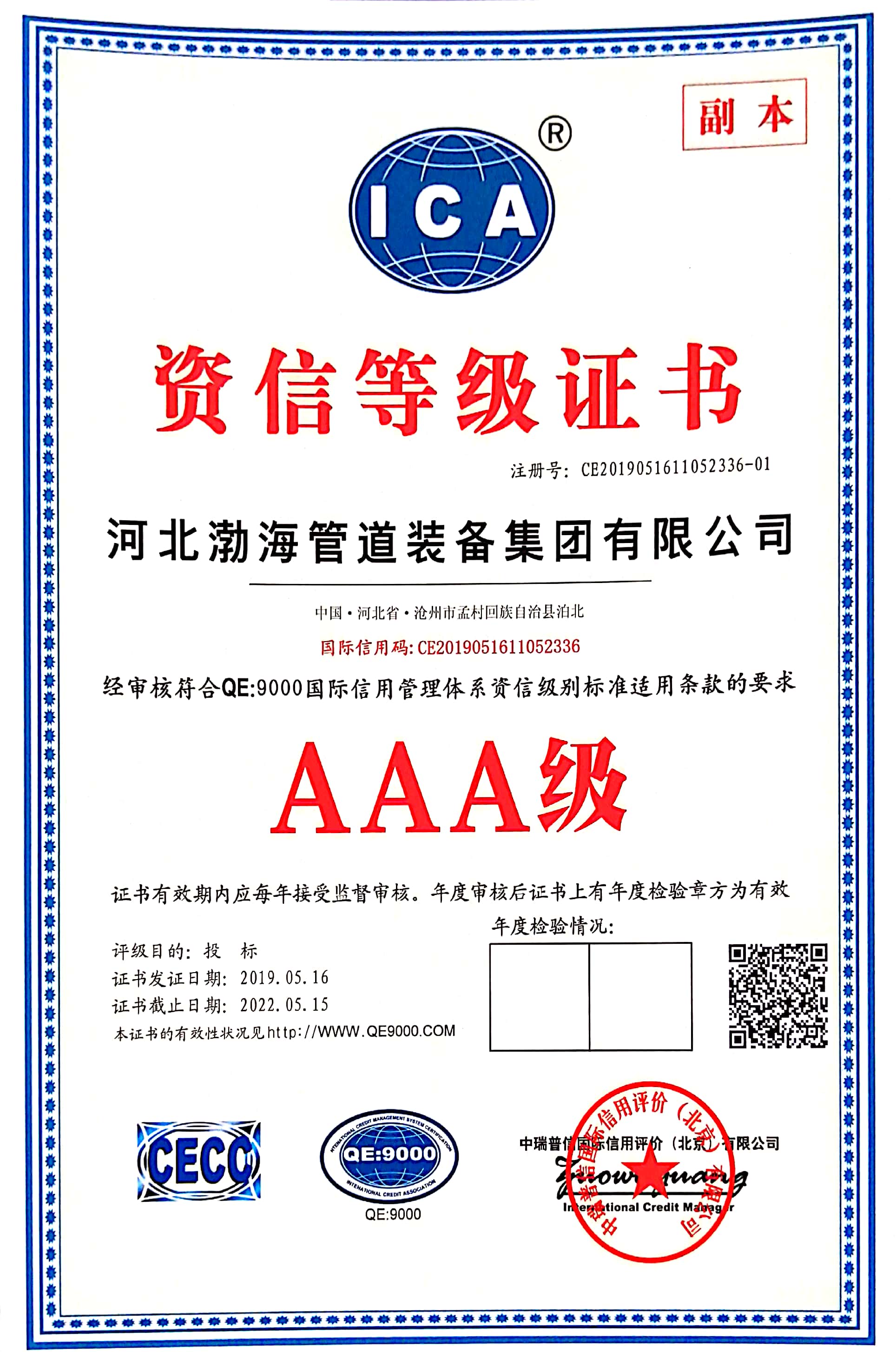 客戶信用等級(jí)證